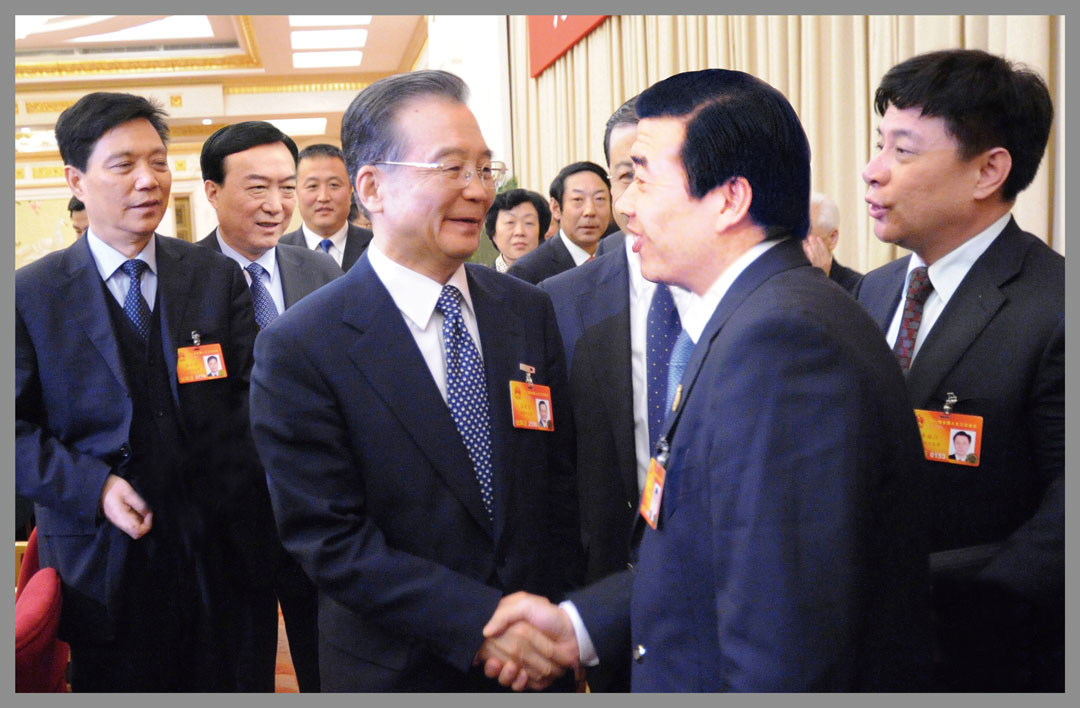 時(shí)任中央政治局常委、國務(wù)院總理溫家寶與楊建忠董事長親切握手